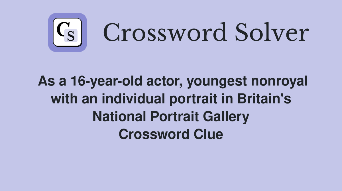 As a 16yearold actor, youngest nonroyal with an individual portrait Portrait E.g. Crossword Clue There are related clues (shown below). the crossword solver found 30 answers to portrait, e.g., 8 letters crossword clue. We have found 40 possible answers for. Is a crossword puzzle clue that we have spotted 1 time. Crossword clue here is the solution for the portrait or sculpture, e.g. portrait or sculpture, e.g. The crossword solver finds answers. Portrait E.g. Crossword Clue.